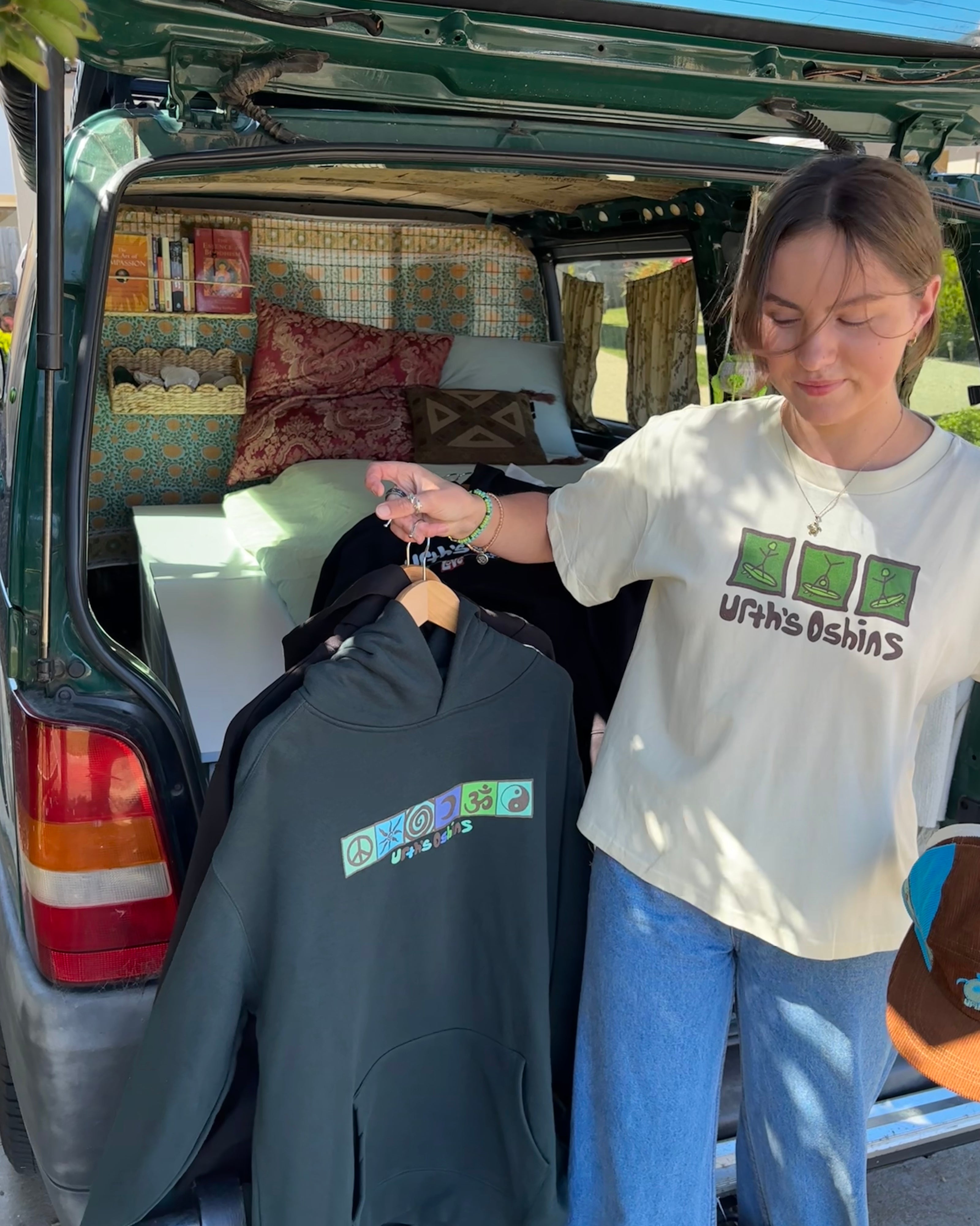 Urth's Oshins is a sustainable surf brand in a van, travelling the Aus coastlines. The designs are hand-drawn, the pieces are made ethically and sustainably in small batches, and the hoodies are made using recycled plastic bottles; because Urth's Oshins loves Earth's oceans.